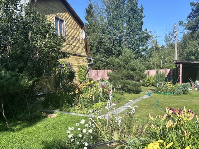 Участок 12 соток прямоугольной формы, сухой, с плодово-ягодными кустами, деревьями и большим количеством цветов. Участок огорожен с трех сторон- сеткой рабицей, с передней стороны- деревянный штакетник. Сделаны ворота для въезда автомобиля.