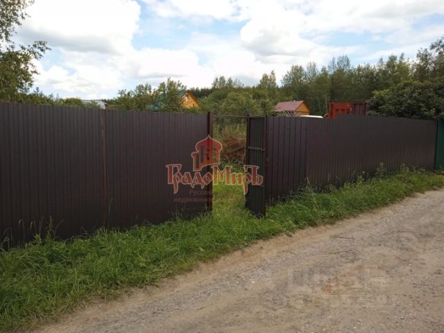 Земельный участок сухой, ровный общей площадью 11 соток, прямоугольной формы 21х48 метров, проведено межевание, категория земель: земли сельскохозяйственного назначения. Участок огорожен забором со всех сторон. По передней части забор установлен на фундаменте с кирпичными столбами, металлический штакетник серого цвета, калитка и ворота.