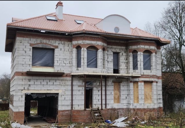 Дом построен в 2023 году по индивидуальному проекту. Для строительства использован газобетонный блок El-Block (400 наружный, 300 несущий, 150 межкомнатные). Фундамент свайной-ростверковый, сваи с шагом в 1м.-1.2 друг от друга. Одна цельная конструкция, залита сразу за один заход. Внутрь фундамента сделана песчаная подушка, поверх нее сделана плита, связывающая с фундаментом.