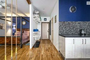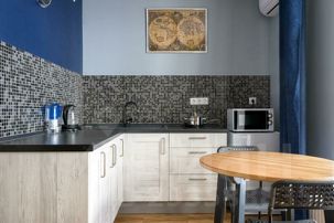 Апартаменты выделяются высококлассным ремонтом, выполненным с привлечением лучших дизайнеров и мастеров. Ключевые элементы декора это ручная работа, осуществленная по эскизам дизайнеров. Особенно оформление квартиры понравится почитателям направления Стимпанк, так как именно определенные декоративные предметы выполнены в этом стиле и вносят определенный шарм и уникальность в общую атмосферу апартаментов.