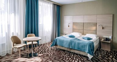 Парк-отель всего в 20 км от Сергиева Посада. Рядом находится музей Ретро-автомобилей. Расстояние отсюда до МКАД по обновленному Ярославскому шоссе составляет 71 км. Дорога от Ярославского вокзала на скоростной электричке займет 50 минут. Ближайший железнодорожный вокзал находится в Сергиев-Посаде в 17 км от отеля. Это отличный вариант для семейного и туристического отдыха. Гостям предлагают для размещения номера с кухнями и студии. Также здесь есть и стандартные номера. Во всех есть кондиционер, телевизор, мини-бар, сейф и собственная ванная комната с туалетно-косметическими принадлежностями. Инфраструктура курорта удивит даже самого взыскательного гостя - помимо обширного выбора ресторанов: "Арена", суши-бар Sapporo, ирландский Паб Belhaven, боулинг на 4 дорожки, бильярд, караоке, оснащенное по последнему слову техники. Для гостей есть спа-центр, где можно расслабиться после напряженного дня. Также есть тренажерный зал, для тех кто хочет поддержать себя в форме. Кроме того открыт кинотеатр на 80 мест. Отель предлагает гостям три бассейна — крытый подогреваемый бассейн с территорией на улице, открытый Infinity-бассейн, а также бассейн акватоник. Также для тех, кто любит животных, есть Сафари-парк. Личный автомобиль можно оставить на парковке. Номер ДЖУНИОР - просторный двухместный номер с двумя односпальными или двуспальной кроватями. Интерьер выполнен в современном стиле и гармоничной цветовой гамме. В номере располагается гостевой уголок и диван, который можно использовать как дополнительное место. Номер идеально подходит для семейного отдыха с детьми. Размещение детей от 3 до 14 лет с проживанием родителей возможно на дополнительном месте в номере за дополнительную оплату.