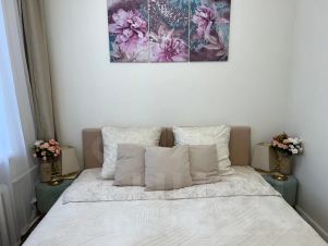 В квартире две изолированные комнаты, в одной двухспальная кровать, в другой две односпальные. Также на кухне удобный раскладной 1,5 спальный диван. Постельное белье, полотенца, посуда, моющие средства, утюг, фен и тд включены в стоимость. Детский манеж и стульчик также предоставляю бесплатно по запросу.