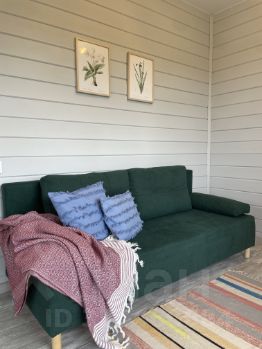 гостиная с большим раскладным диваном, совмещенная с кухней;
