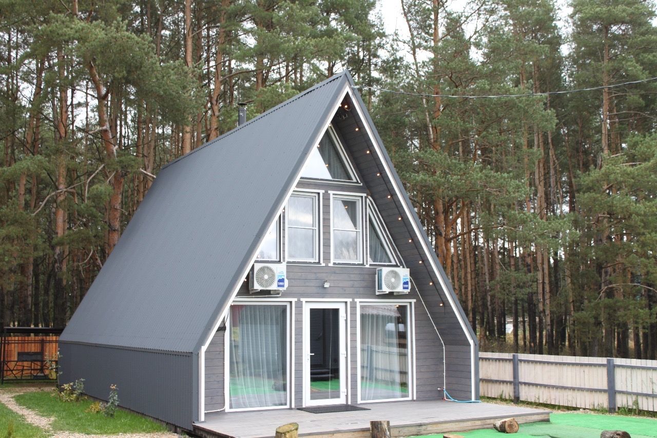Треугольный домик премиум класса с камином,ванной у окна и балконом с видом на лес для романтического отдыха.Есть баня и банный чан под соснами.Стоимость в календаре за 2 гостей,входит: