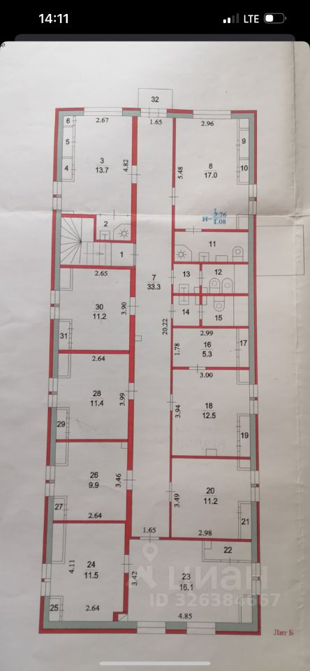 • кабинетная планировка (кабинеты от 9 до 17 м²);