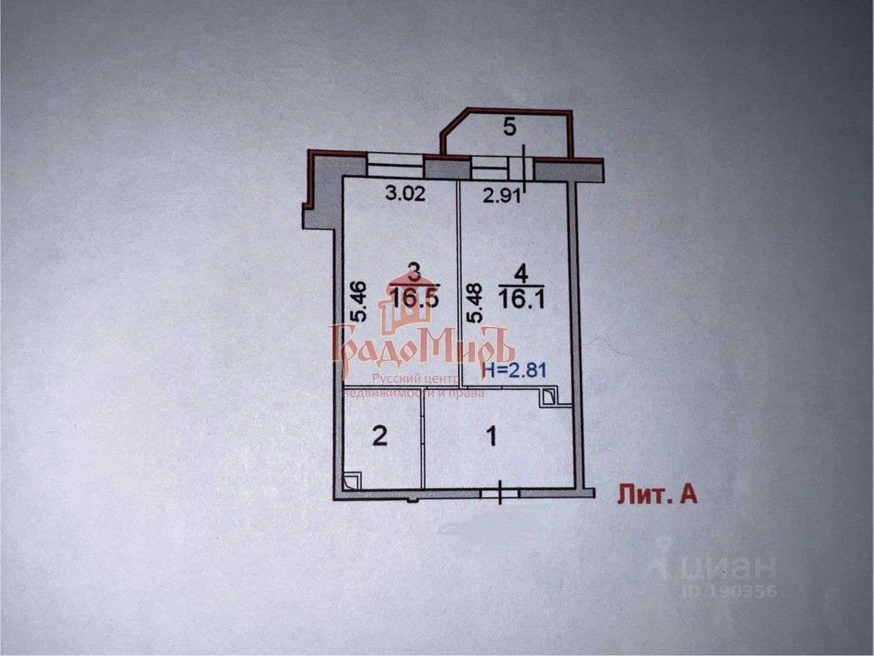 * Комната — 16,5 м²;