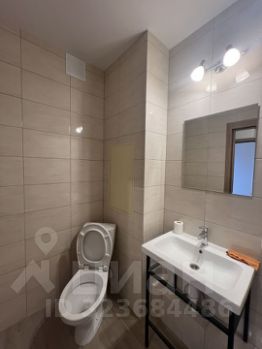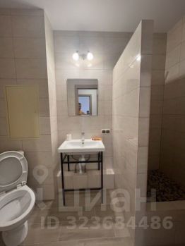 В ванной: душевая кабина, раковина и туалет.