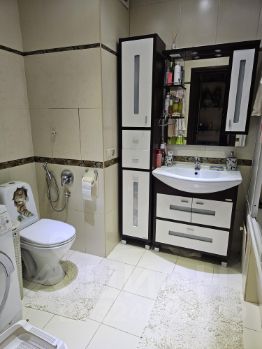 Кухня оборудована современной , дорогой и надежной техникой, что делает пребывание здесь особенно приятным. В квартире установлен теплый пол, который добавляет уюта в холодное время года.