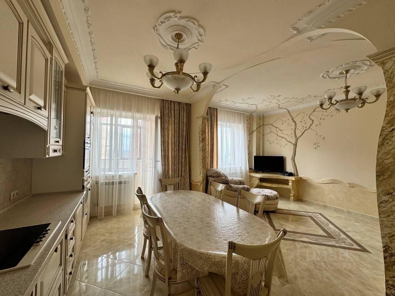 Выполнeн кaчecтвeнный peмонт в клаcсическом стиле с использованием дорогих и износостойких материалов. Просторная итальянская кухня плавно переходит в обеденную зону и уютную гостиную, создавая удобное пространство для семейных встреч и приёма гостей. Кухонный гарнитур выполнен на заказ, фасады и отделка подобраны в едином гармоничном тоне. Встроенная техника - варочная панель, духовой шкаф и микроволновая печь SМЕG, стиральная машина ВОSСН, встроенный холодильник LIЕВНЕRR.