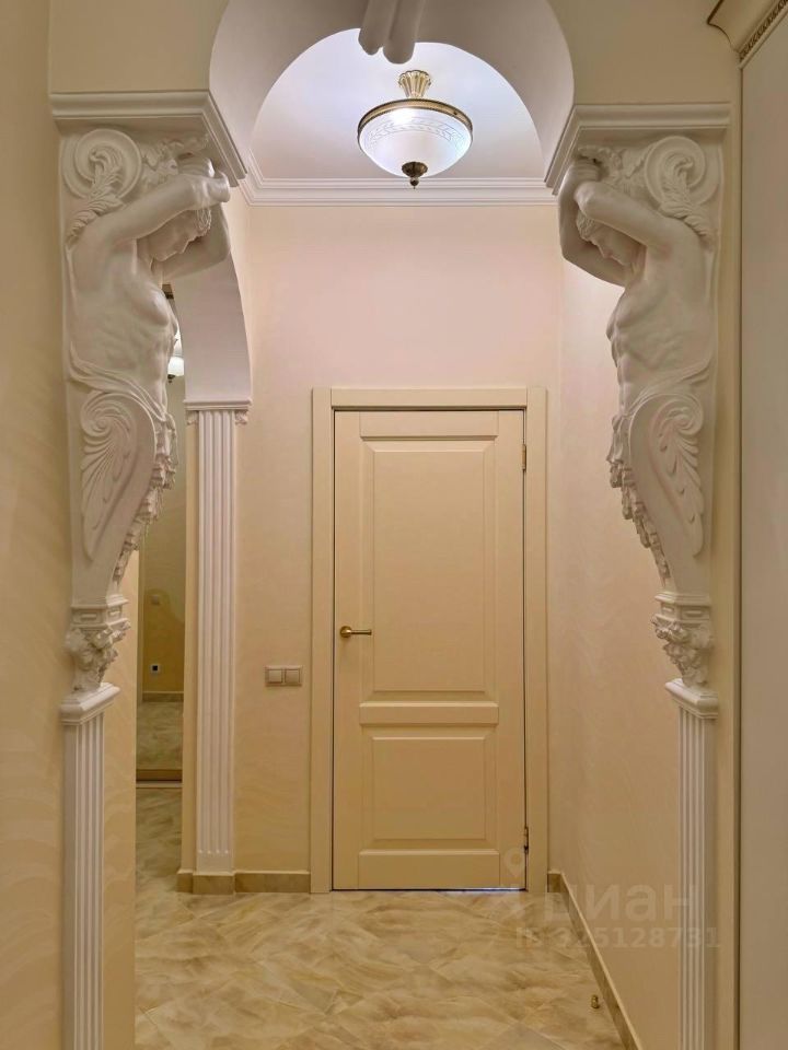 Жилые комнаты светлые, с правильной формой и продуманной планировкой, что позволяет легко разместить мебель и создать комфортное пространство для каждого члена семьи. В отделке использованы декоративные элементы - лепнина, художественная роспись стен, колонны, что придаёт интерьеру индивидуальность и особый шарм. Имеется просторная гардеробная.