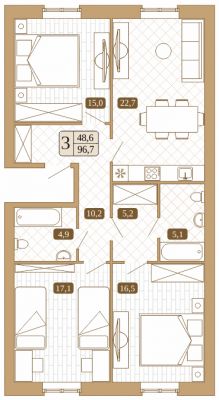 Продаётся 3-комнатная квартира в сданном доме (Дом 8), срок сдачи: II-кв. 2025, общей площадью 96.7 кв.м., на 1 этаже. Корпорация "КОШЕЛЕВ" приступила к реализации проекта строительства микрорайона малоэтажной застройки в Сергиево-Посадском районе Московской области, одном из живописнейших мест и важном культурном центре Подмосковья, входящего в "Золотое кольцо" туристических маршрутов России.