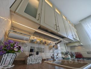 Квартира в отличном состоянии, ремонт сделан во всех помещениях, а на кухне и в гостиной совсем свежий - чуть больше года назад. Можно переехать сразу, после покупки! В квартире все делалось для себя, поэтому окна - немецкие, дорогая качественная сантехника в ванной и туалетной комнатах, в туалетной комнате предусмотрен гигиенический душ, на кухне теплый пол и водонагреватель, который крайне полезен на время сезонного отключения горячей воды.