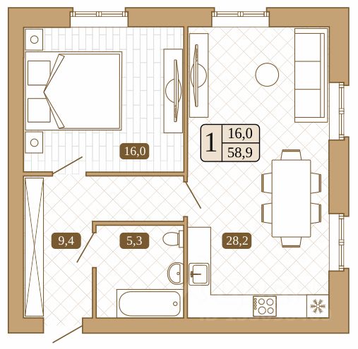 Общая площадь58,9 м²