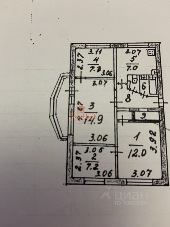 Просторная кухня 7 м2 для большой семьи. Большой остекленный балкон. Что важно - раздельный санузел.