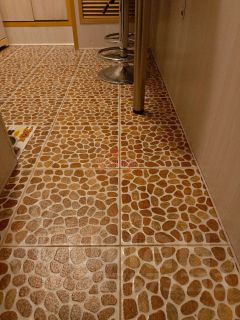 В коридоре, кухне и санузле на полу плитка. В комнате ламинат и сверху ковролин.