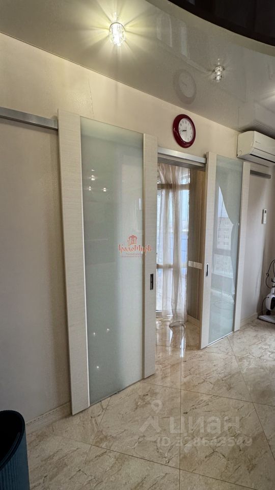 Напольное покрытие - мраморные плиты. Потолки - натяжные двухуровневые с многоточечной подсветкой.
