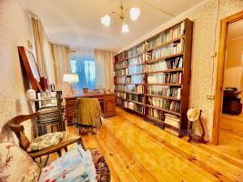 Огромная терраса с выходом на две стороны, холл, кухня-гостиная, просторный кабинет , три спальни, библиотека, ванная комната и санузел.
