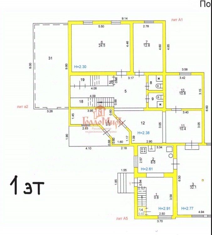 Высота потолков 2.6м!