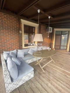 В доме большая кухня - столовая, 5 комнат, два санузла. В цокольном этаже расположена котельная. К дому пристроен теплый гараж и большая веранда. Дом полностью меблирован, мебель и техника остается покупателю.