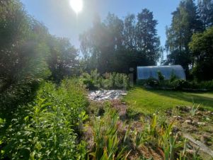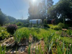 На участке насаждения плодово-ягодные (яблоня, груша, черешня, ухоженные грядки и цветник). Парник из поликарбоната.